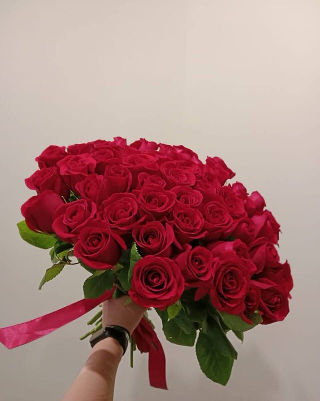 Акция! Розы Красные 51 шт. — симфония цветовых решений, где каждый элемент создает гармонию с другими. Яркие оттенки и текстуры создают эффектный визуальный ансамбль, который вызывает восхищение и притягивает взгляды.